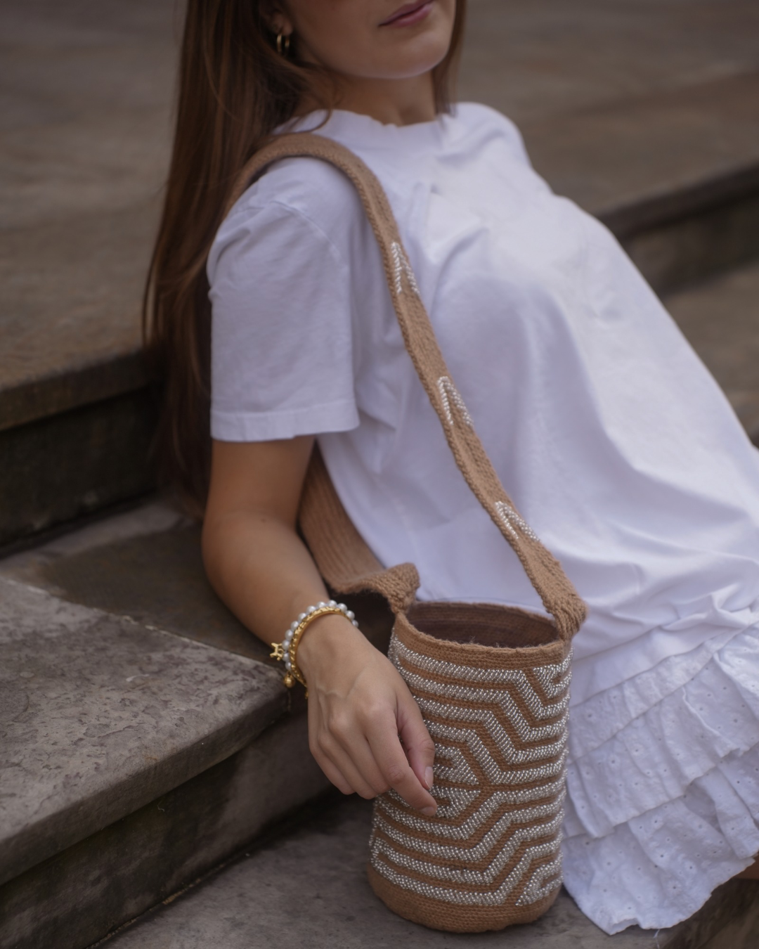 Las mochilas Arhuacas son un símbolo ancestral de la riqueza cultural de las comunidades indígenas que habitan la Sierra Nevada de Santa Marta, en Colombia. Tejidas a mano por artesanas indígenas, estas piezas están elaboradas con lana de alpaca local y adornadas con mostacillas checas que añaden un toque de brillo y color duradero.