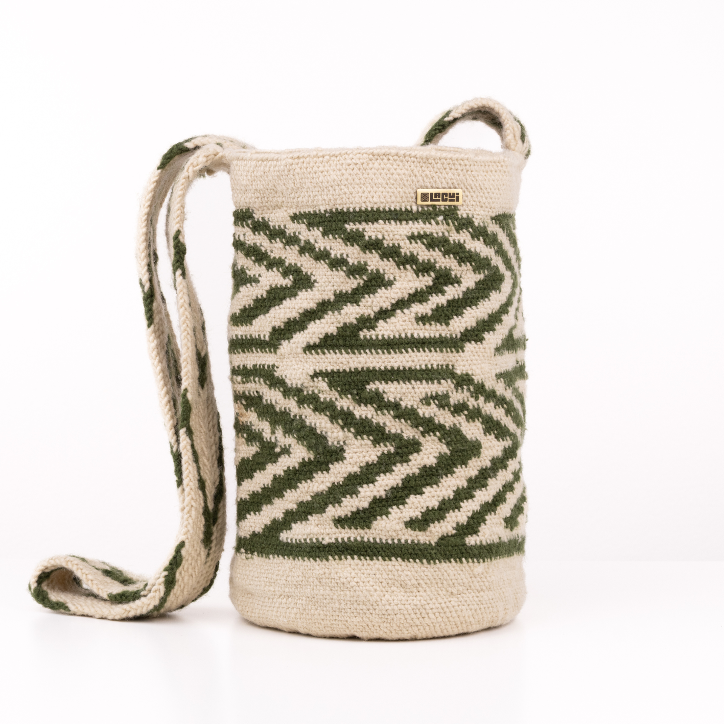 Las mochilas son una antigua tradición artesanal de las poblaciones indígenas Arhuacas, que viven en la Sierra Nevada de Santa Marta en Colombia. Estas mochilas son tejidas a mano por artesanas indígenas en la Sierra Nevada utilizando lana alpaca local. El proceso de tejido es largo y laborioso, y lleva aproximadamente 4 a 5 días completar una sola mochila.