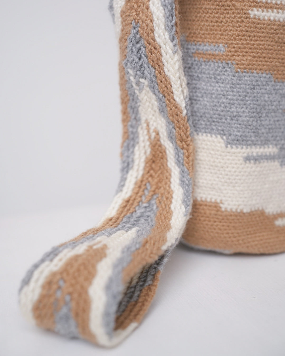 Las mochilas son una antigua tradición artesanal de las poblaciones indígenas Arhuacas, que viven en la Sierra Nevada de Santa Marta en Colombia. Estas mochilas son tejidas a mano por artesanas indígenas en la Sierra Nevada utilizando lana alpaca local. El proceso de tejido es largo y laborioso, y lleva aproximadamente 4 a 5 días completar una sola mochila.