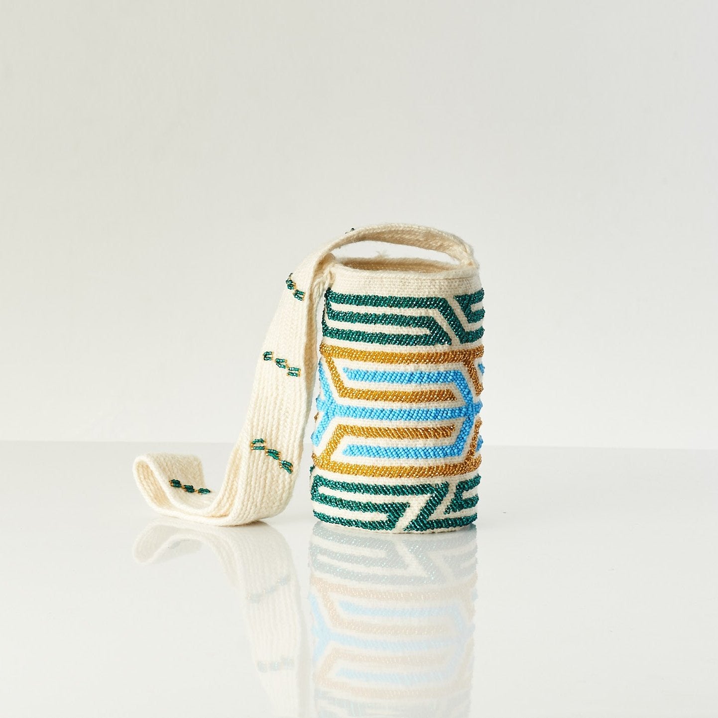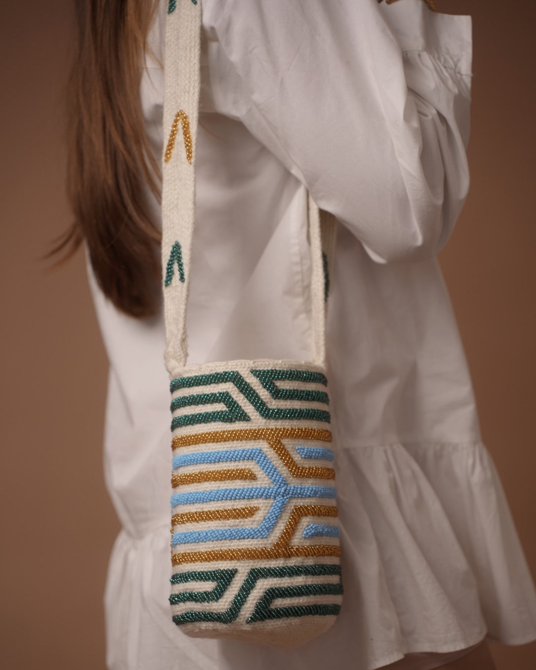 Las mochilas Arhuacas son un símbolo ancestral de la riqueza cultural de las comunidades indígenas que habitan la Sierra Nevada de Santa Marta, en Colombia. Tejidas a mano por artesanas indígenas, estas piezas están elaboradas con lana de alpaca local y adornadas con mostacillas checas que añaden un toque de brillo y color duradero.