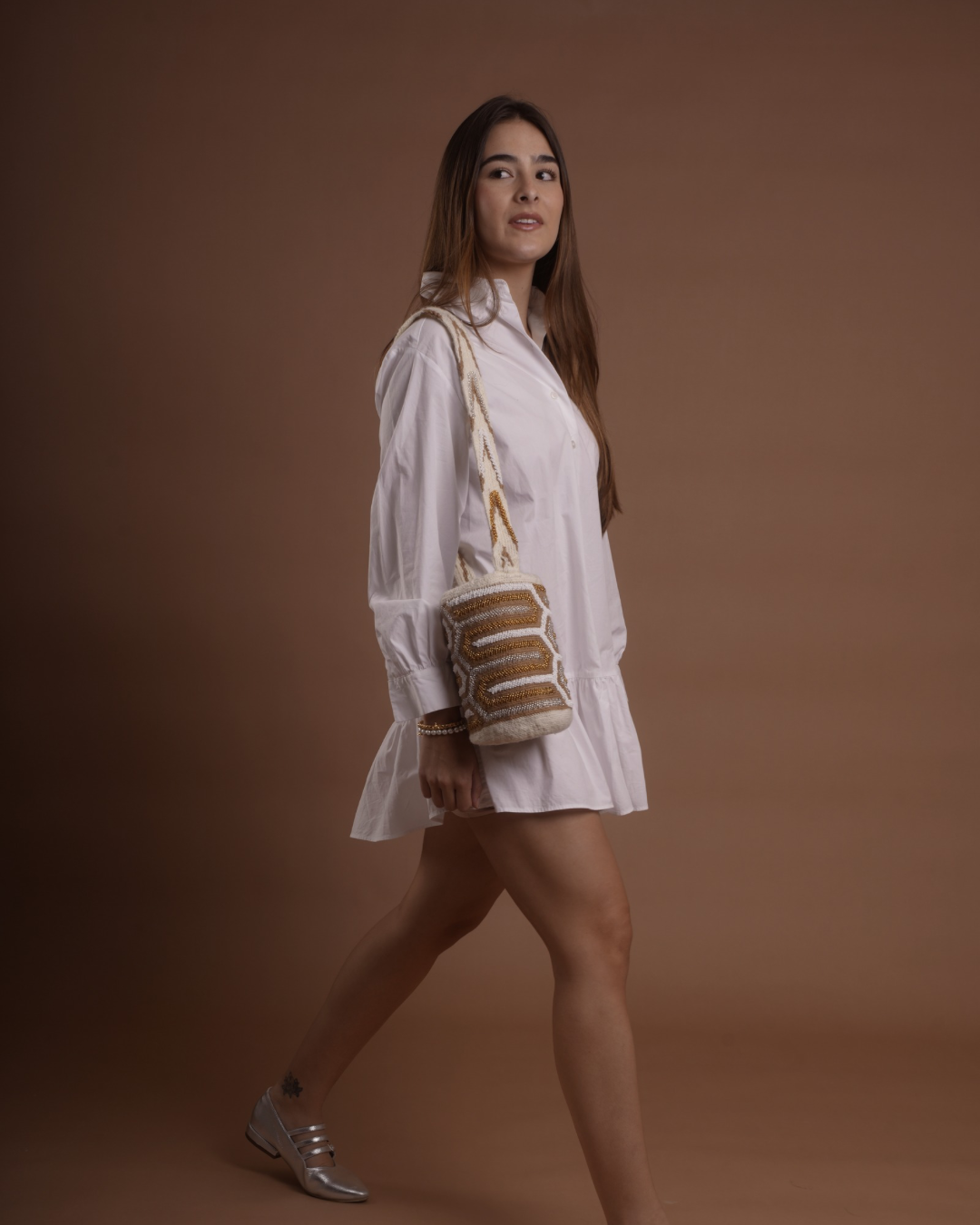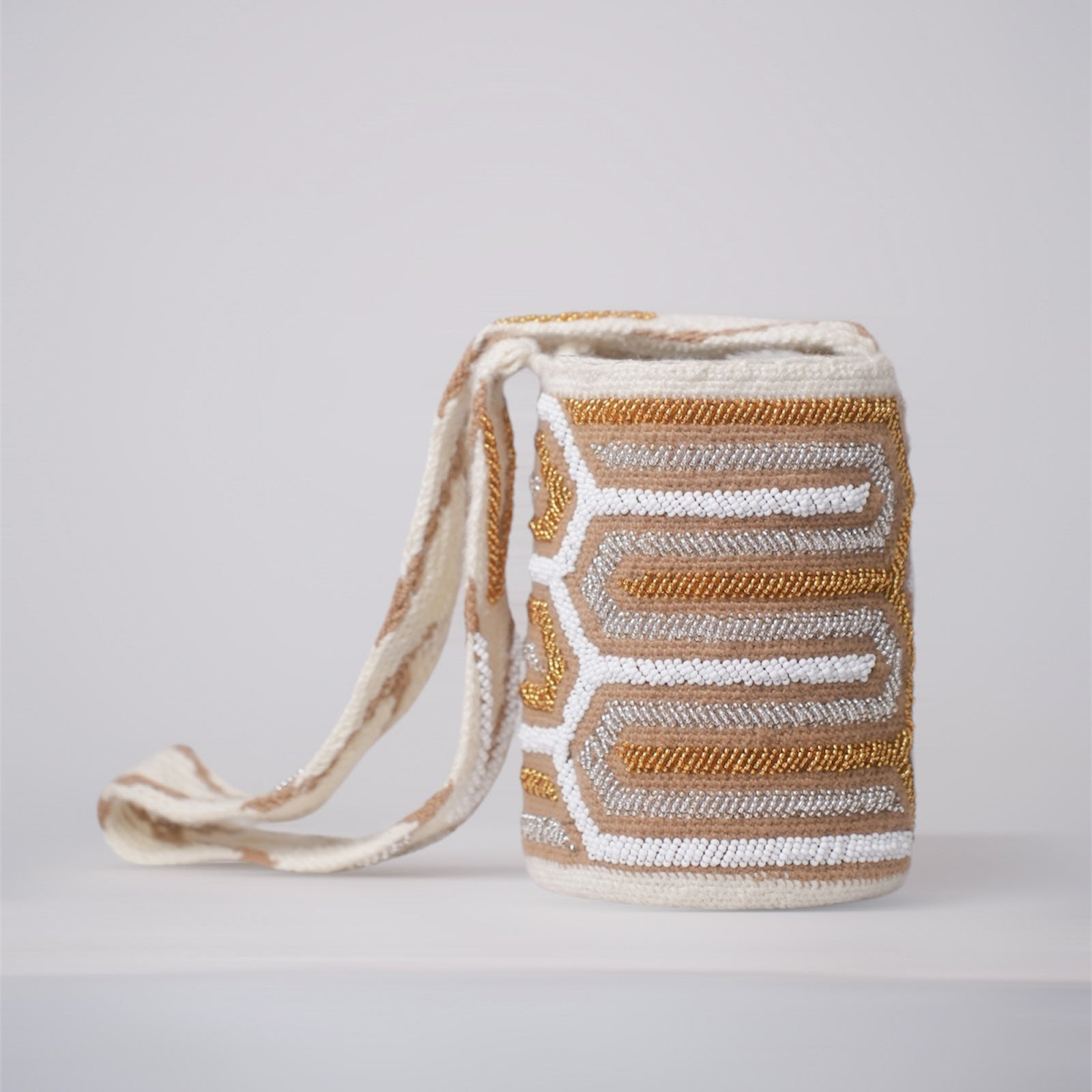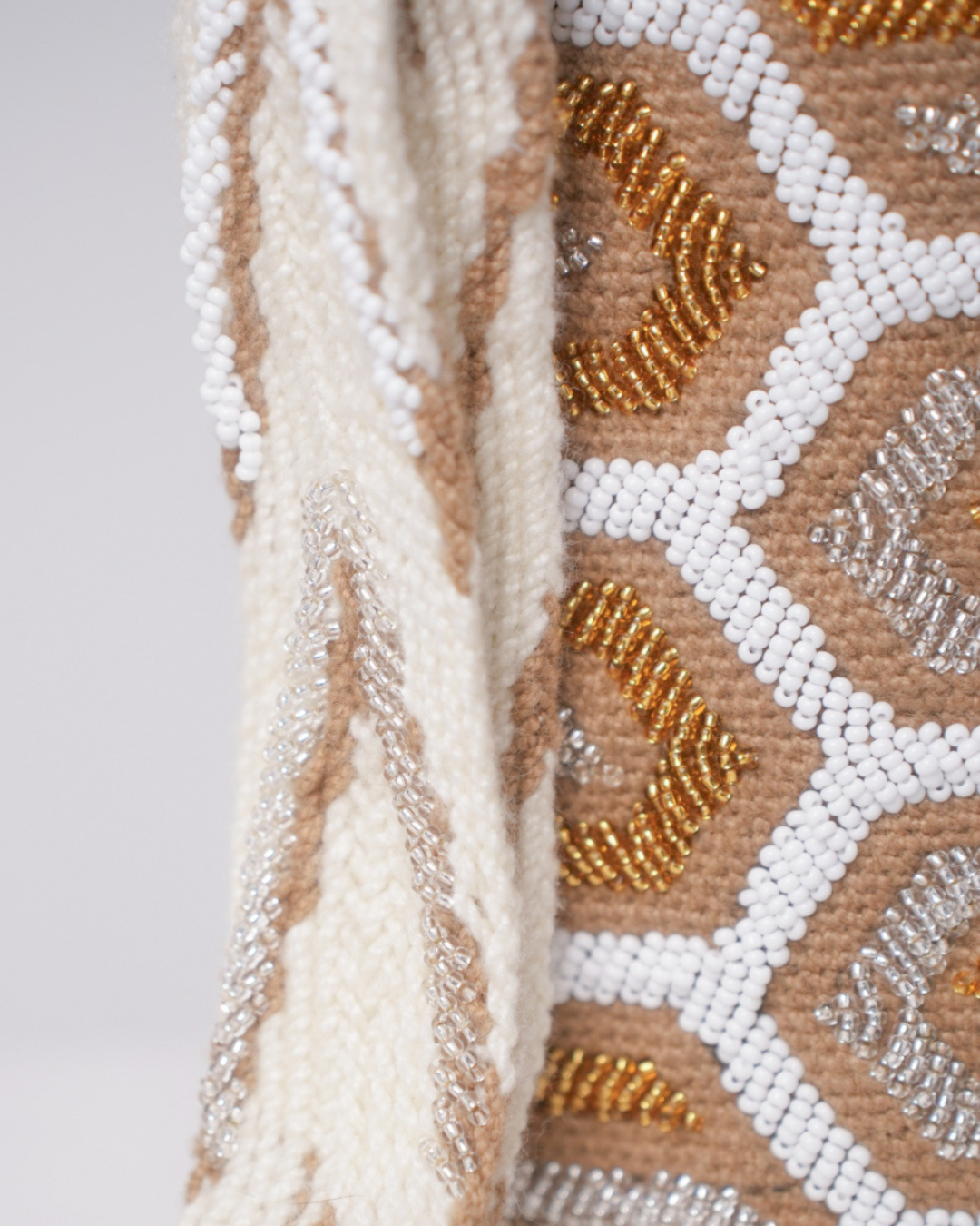 Las mochilas Arhuacas son un símbolo ancestral de la riqueza cultural de las comunidades indígenas que habitan la Sierra Nevada de Santa Marta, en Colombia. Tejidas a mano por artesanas indígenas, estas piezas están elaboradas con lana de alpaca local y adornadas con mostacillas checas que añaden un toque de brillo y color duradero.