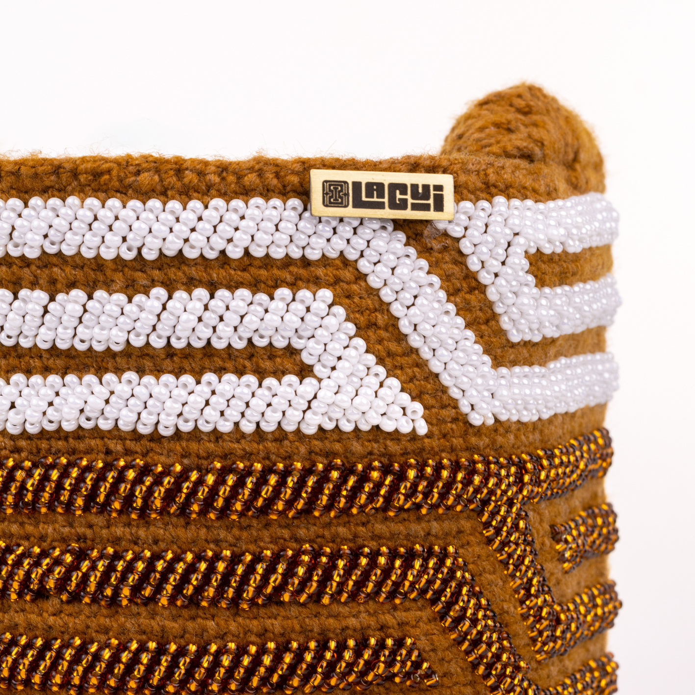 Las mochilas Arhuacas son un símbolo ancestral de la riqueza cultural de las comunidades indígenas que habitan la Sierra Nevada de Santa Marta, en Colombia. Tejidas a mano por artesanas indígenas, estas piezas están elaboradas con lana de alpaca local y adornadas con mostacillas checas que añaden un toque de brillo y color duradero.