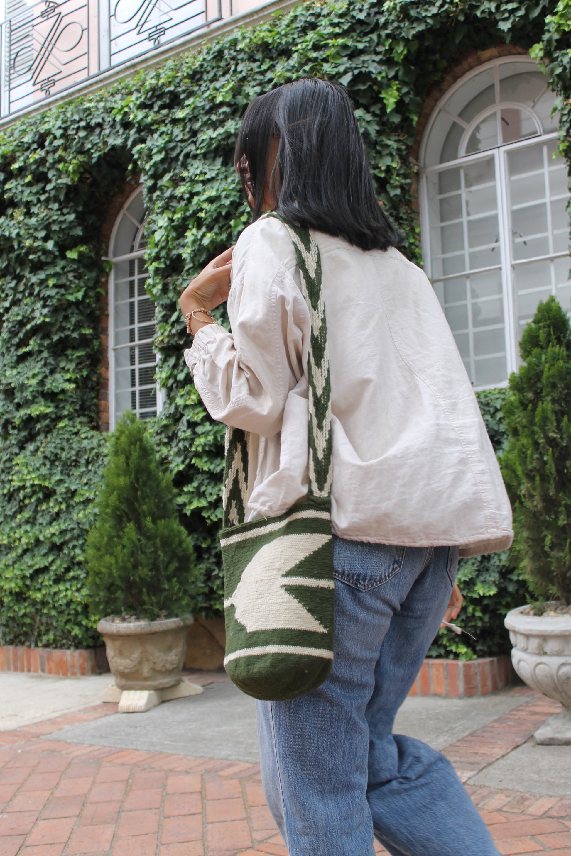 Las mochilas son una antigua tradición artesanal de las poblaciones indígenas Arhuacas, que viven en la Sierra Nevada de Santa Marta en Colombia. Estas mochilas son tejidas a mano por artesanas indígenas en la Sierra Nevada utilizando lana alpaca local. El proceso de tejido es largo y laborioso, y lleva aproximadamente 4 a 5 días completar una sola mochila.