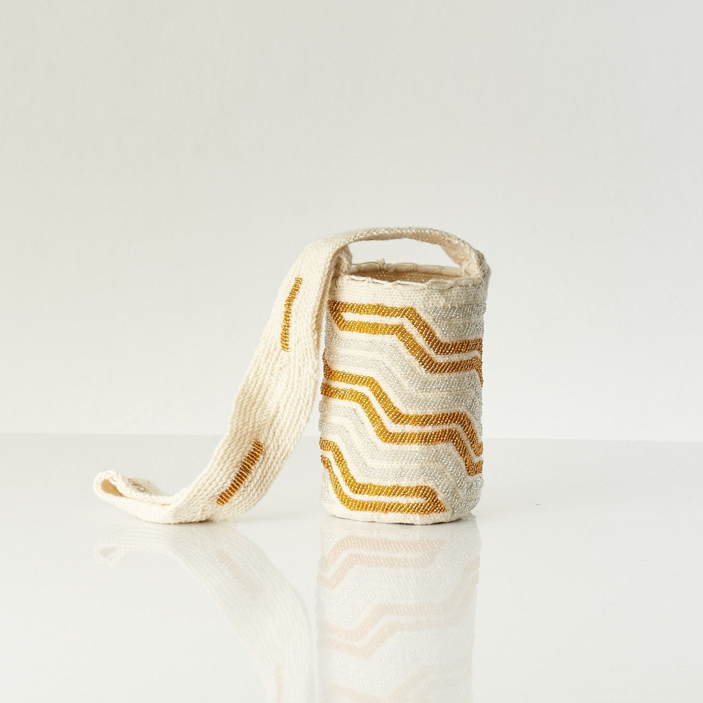 Las mochilas Arhuacas son un símbolo ancestral de la riqueza cultural de las comunidades indígenas que habitan la Sierra Nevada de Santa Marta, en Colombia. Tejidas a mano por artesanas indígenas, estas piezas están elaboradas con lana de alpaca local y adornadas con mostacillas checas que añaden un toque de brillo y color duradero.