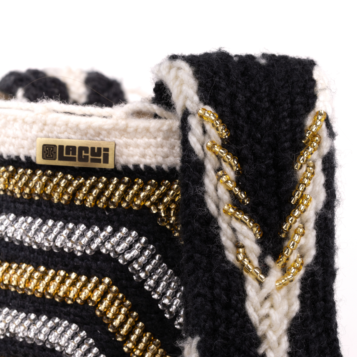Las mochilas Arhuacas son un símbolo ancestral de la riqueza cultural de las comunidades indígenas que habitan la Sierra Nevada de Santa Marta, en Colombia. Tejidas a mano por artesanas indígenas, estas piezas están elaboradas con lana de alpaca local y adornadas con mostacillas checas que añaden un toque de brillo y color duradero.