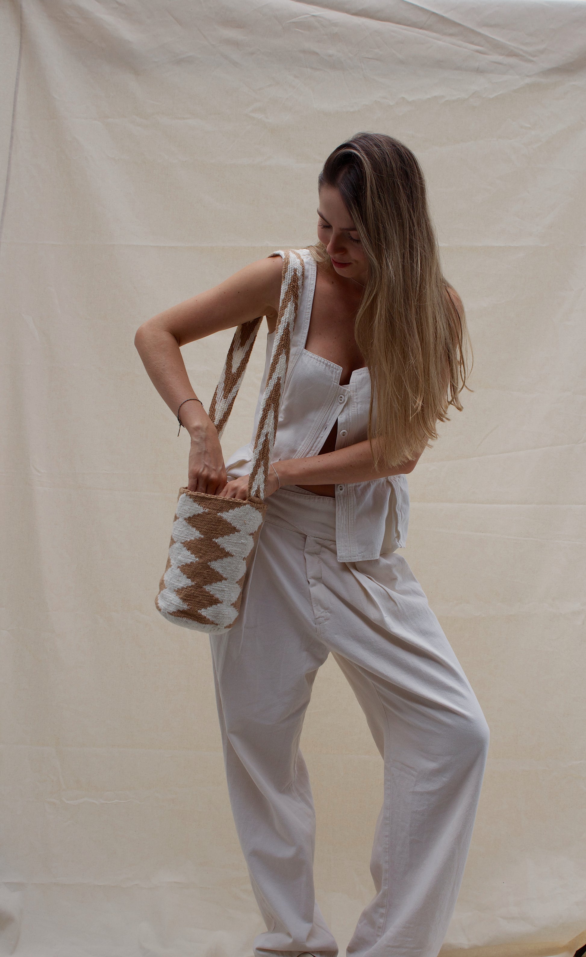 La mochila se caracteriza por un diseño simple, estético y refinado, que la hace un accesorio versátil y a la moda. Esta mochila es una excelente opción para aquellos que buscan un accesorio único y sostenible. Es una forma de apoyar las tradiciones artesanales y culturales de los pueblos indígenas de Colombia.